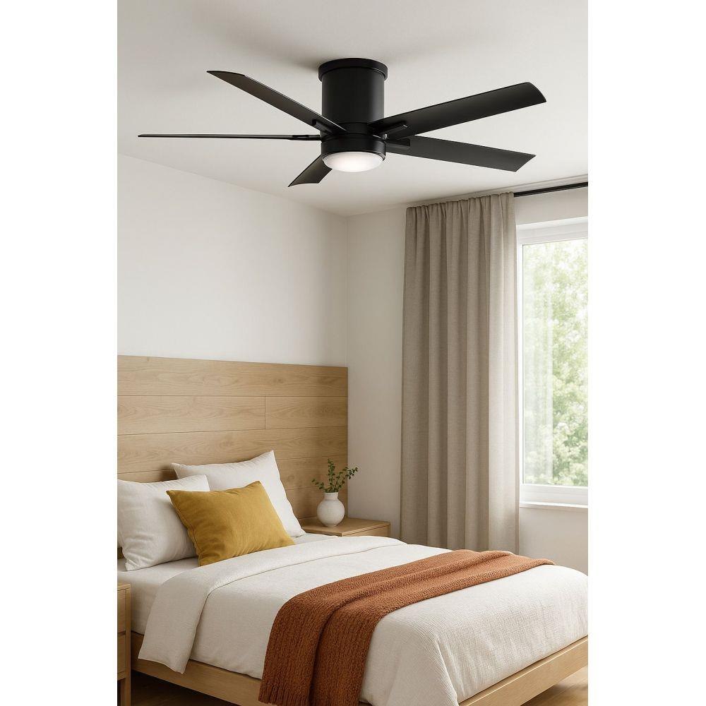 Vail Flush offers a transitional design with gently curved blades and an array of finish options, while its integrated LED and DC motor technology deliver excellent energy efficiency. Vail Flush is so versatile, it can be used for both indoor and outdoor spaces.Features and Benefits: