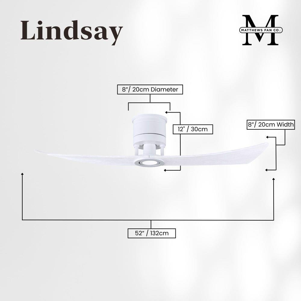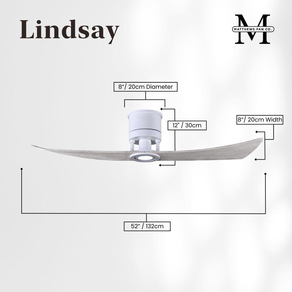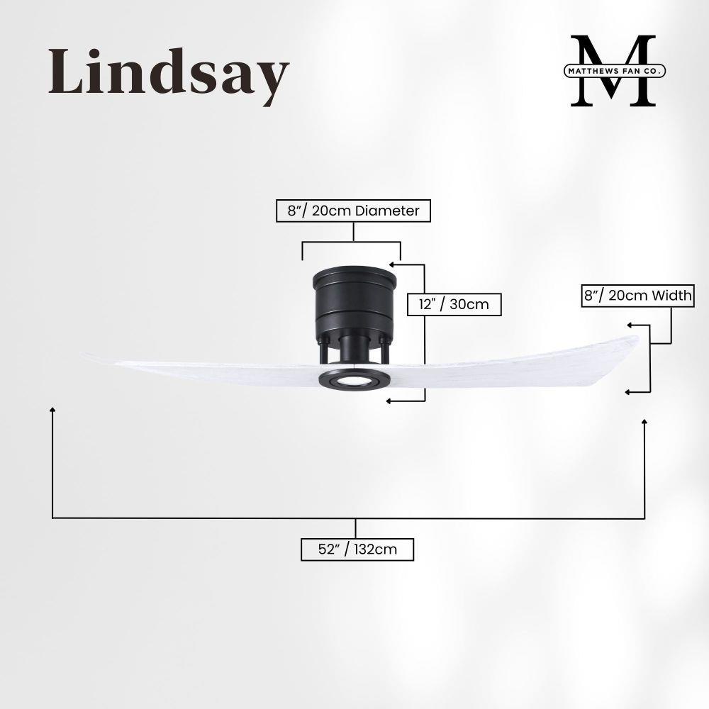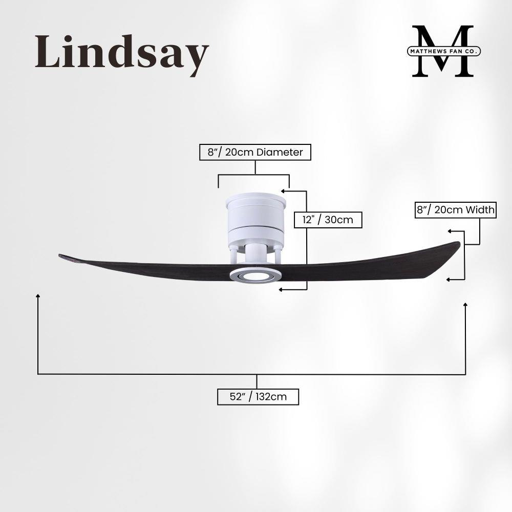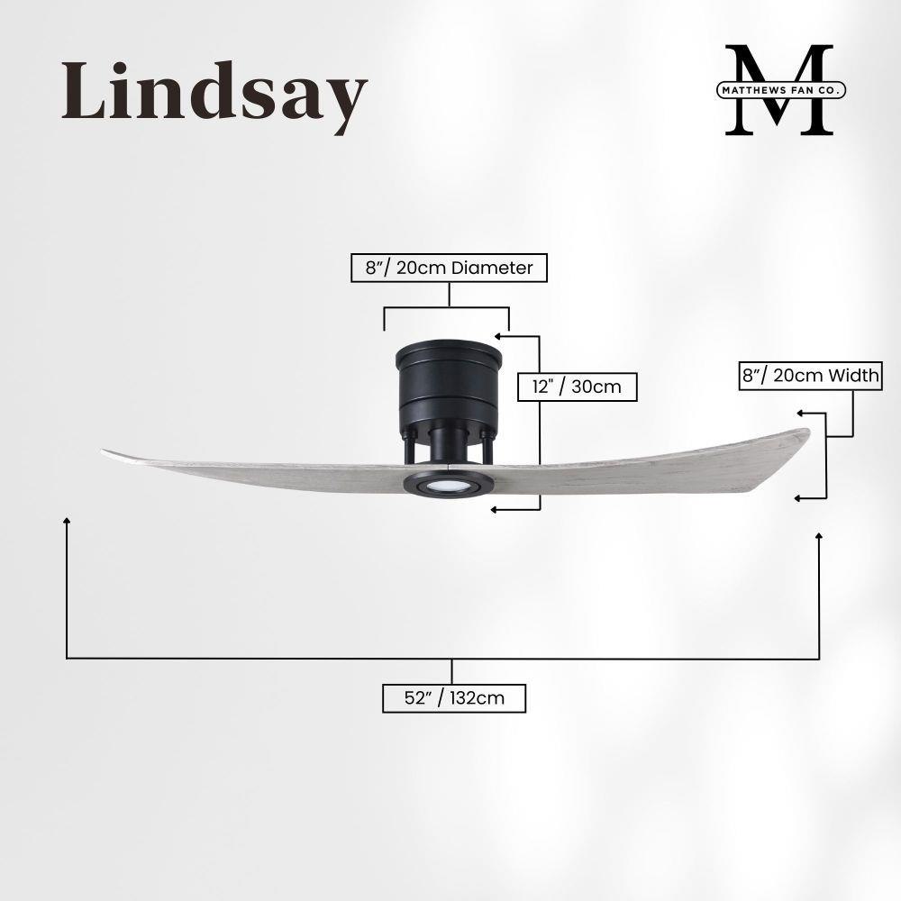 The Lindsay ceiling fan offers a simple, yet refined air flow solution to any space. The only two-paddle fan in the Matthews Fan Company family, this design adds a nuanced look with the same great level of airflow. The two elegant, solid wood blades quietly circulate air as they revolve around an understated central motor housing. Integrated into the design is an eco-friendly, dimmable LED light kit which will provide illumination for decades to come. Constructed of cast aluminum and heavy stamped steel, the Lindsay has a limited lifetime warranty.