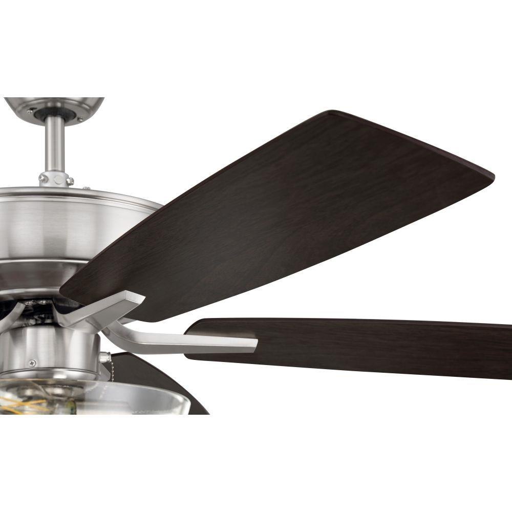 The ideal combination of excellent performance, exceptional value and timeless style, the NEW Craftmade Pro Plus 52 inch ceiling fan with clear glass bowl light with dimmable LED bulbs included featuring a clean motor, updated straight blade arms and canopy is built for performance. The dual mount, 3-speed, reversible fan includes custom 52 inch reversible blades. Optional 44 inch custom reversible blades and remote controls are available.Standard, 3-speed reversible motorDual mount (close mount adapter optional)4 inch downrod (included)Limited lifetime warrantyCustom reversible blades includedClear glass bowl light kit included2 x 7w LED medium base bulbs includedHardwire compatibleUniversal remote control (optional).