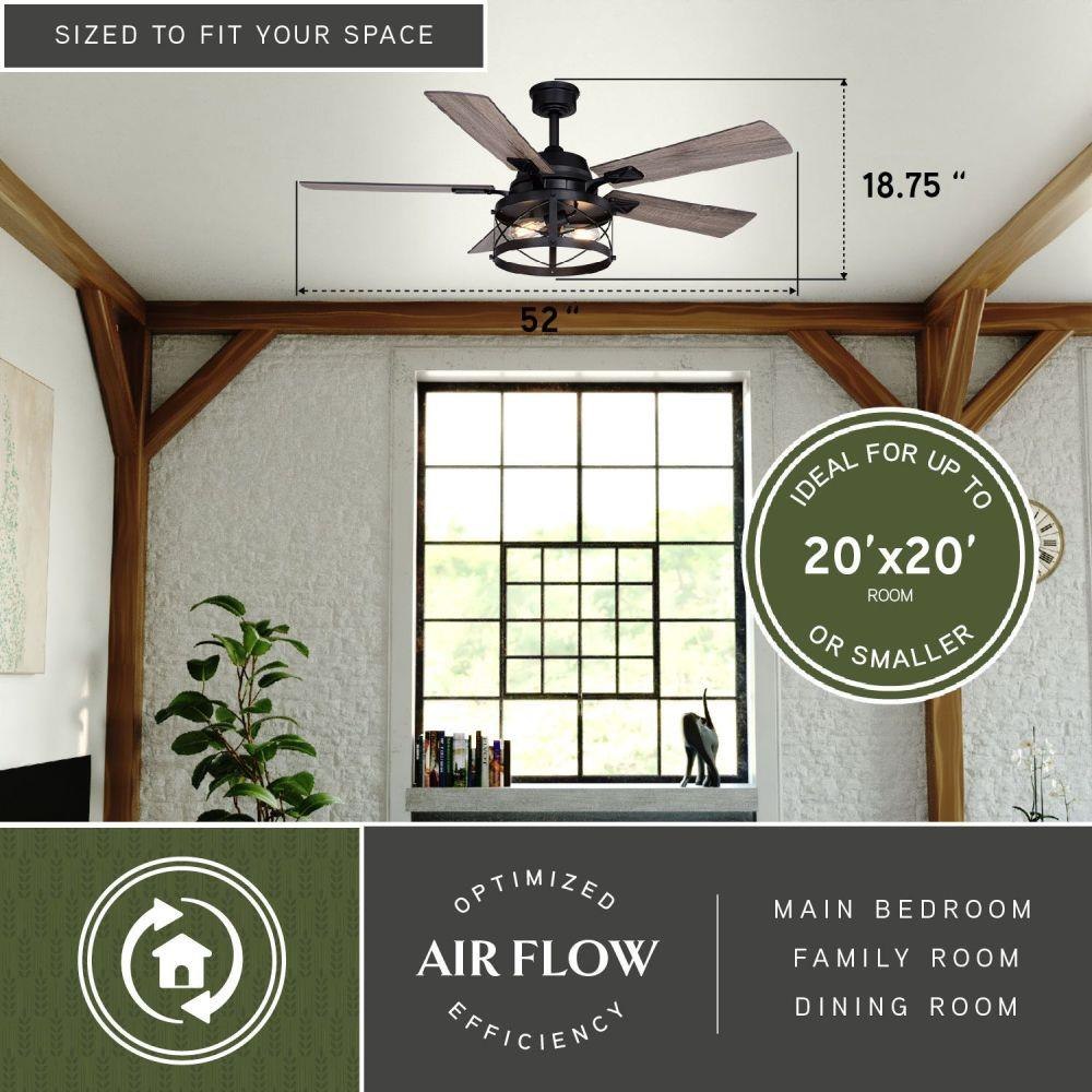 Farmhouse charm is exemplified in the Elburn collection. A black finish strongly accentuates the drum shaped cage shade that sits just below the wooden fan blades. This ceiling fan will bring comfort and warmth to any room in your home.