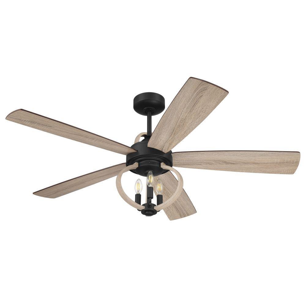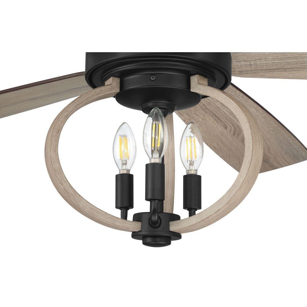 The Reese 52" smart ceiling fan combines transitional design with powerful performance. Featuring a quiet energy saving 6-speed, reversible DC motor, set of five custom blades, integrated open cage three light kit with dimmable LED bulbs included, the Reese 52” smart fan is easily controlled with either the included remote controls or the integrated WIFI featuring breeze and timer functions compatible for use with most smart home devices, smart phones and systems with no additional hub needed.