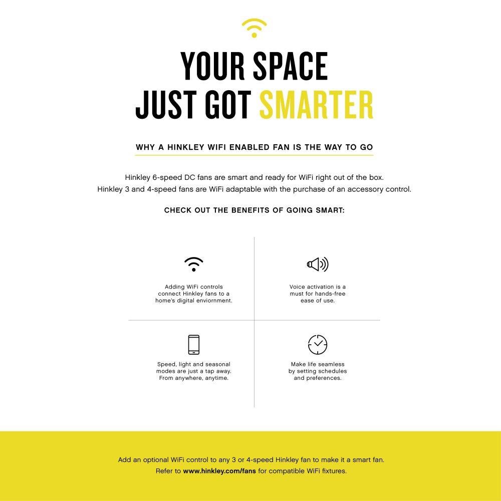 • Fan Control included, HIRO Control - 6 Speed Reversing | Suitable for use in wet (outdoor direct rain or sprinkler) locations as defined by NEC and CEC. Meets United States UL Underwriters Laboratories & CSA Canadian Standards Association Product Safety Standards | WiFi compatibility with included fan control | LED components carry a 5-year limited warranty | Bold lines and a clean, minimalist style creates a modern look | This item includes a 6" down rod. Other various lengths of down rods are available and sold separately to customize the installation height. | This item may be hung on a sloped ceiling | Blades, controls, switches, capacitors and hardware carry a 1 year warranty | Neutral perfection with a flawless white finish enhances design | Single power source required | Motor carries a lifetime warranty | Fans should be installed at a minimum of 7 feet from the floor