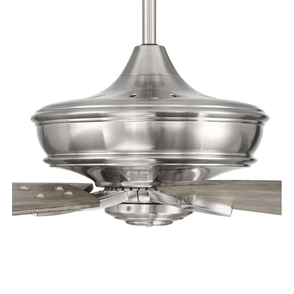 The Craftmade Santori 60" ceiling fan is the perfect combination of excellent performance, exceptional value and timeless style. The Craftmade Santori 60" ceiling fan includes IDC remote and wall controls, energy efficient 6-speed, reversible DC motor, updated straight blade arms and custom blades. Brushed Polished Nickel is for indoor use only. Espresso, Flat Black and Matte White are damp rated for both indoor and outdoor use.