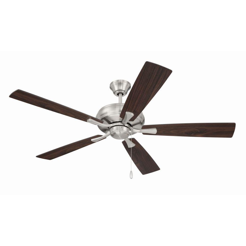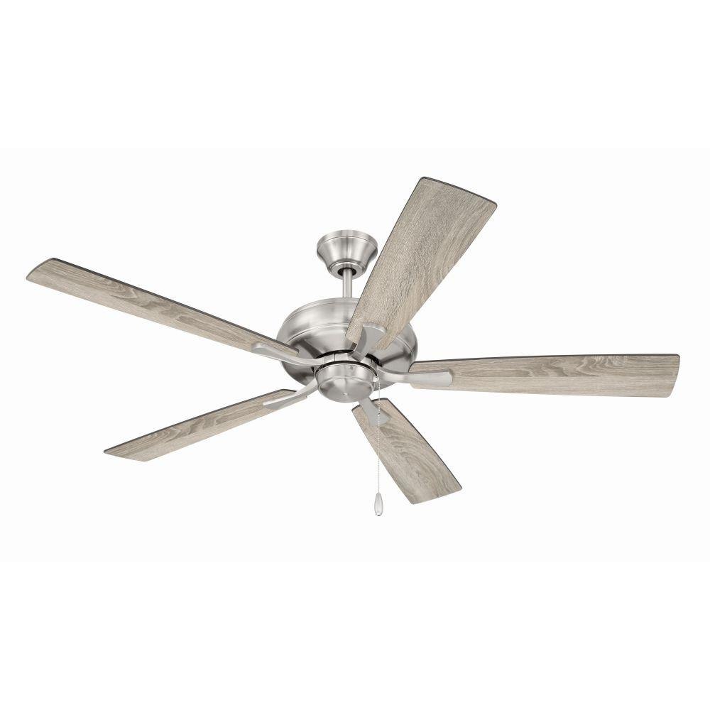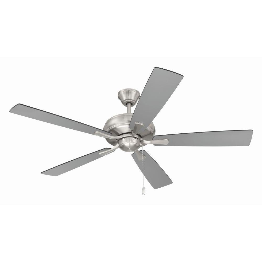 The Craftmade Eos 52" ceiling fan features a smooth, 3-speed, reversible motor, updated blade arms, and reversible custom 52" blades. Optional remote controls are available (Sold Separately).