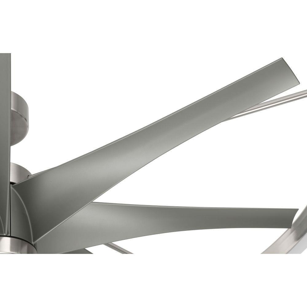 The Axel 57" eight-blade ceiling fan exudes style and attitude with the performance and features to back it up. Surrounded by a 35 Watt ring of integrated 3000-5000 CCT LED Light (Dimmable), the energy saving, 6-speed reversible DC motor can be controlled using the included handheld remote control or through the integrated Wi-Fi feature using the Bond app which allow access to additional functions including voice control, breeze, and timer functions compatible for use with most smart home devices, smartphones, and systems with no additional hub needed. Brushed Polished Nickel is for indoor use only. Flat Black is damp rated for indoor/outdoor use.
