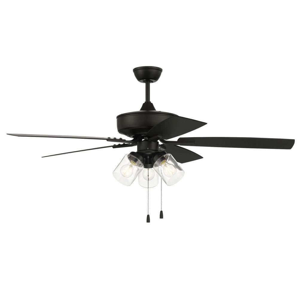 The ideal combination of excellent performance, exceptional value and timeless style, the wet rated Outdoor Pro Plus 52" ceiling fan featuring a clean motor with integrated clear glass enclosed three light (non-dimmable LED bulbs included), updated canopy and straight blade arms is built for performance. The dual mount, standard 3-speed, reversible fan with custom 52" ABS blades is built to deliver performance with style.
