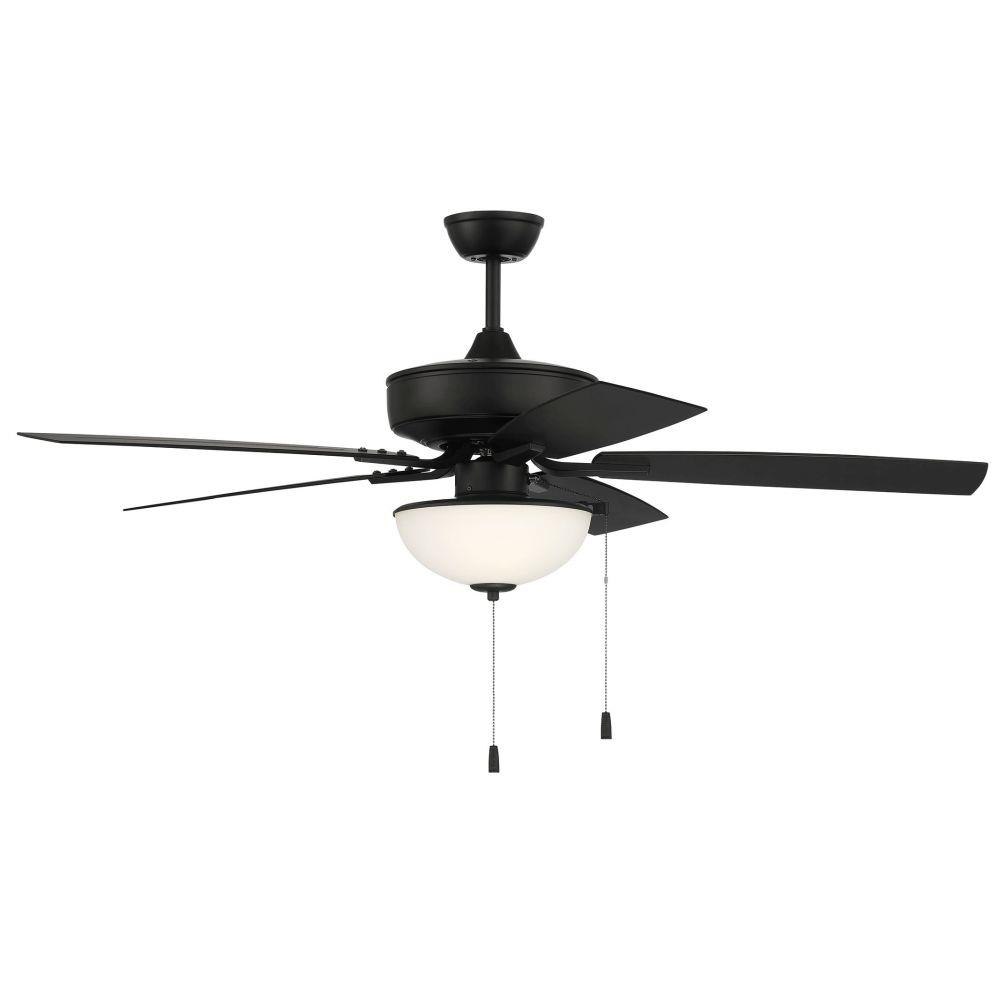The ideal combination of excellent performance, exceptional value and timeless style, the wet rated Craftmade Outdoor Pro Plus 52" ceiling fan with optional white frosted two light bowl kit with non-dimmable LED bulbs (included) featuring a clean motor, updated canopy and straight blade arms is built for performance. The dual mount, standard, 3-speed, reversible fan with custom 52" ABS blades deliver superior airflow for years to come.