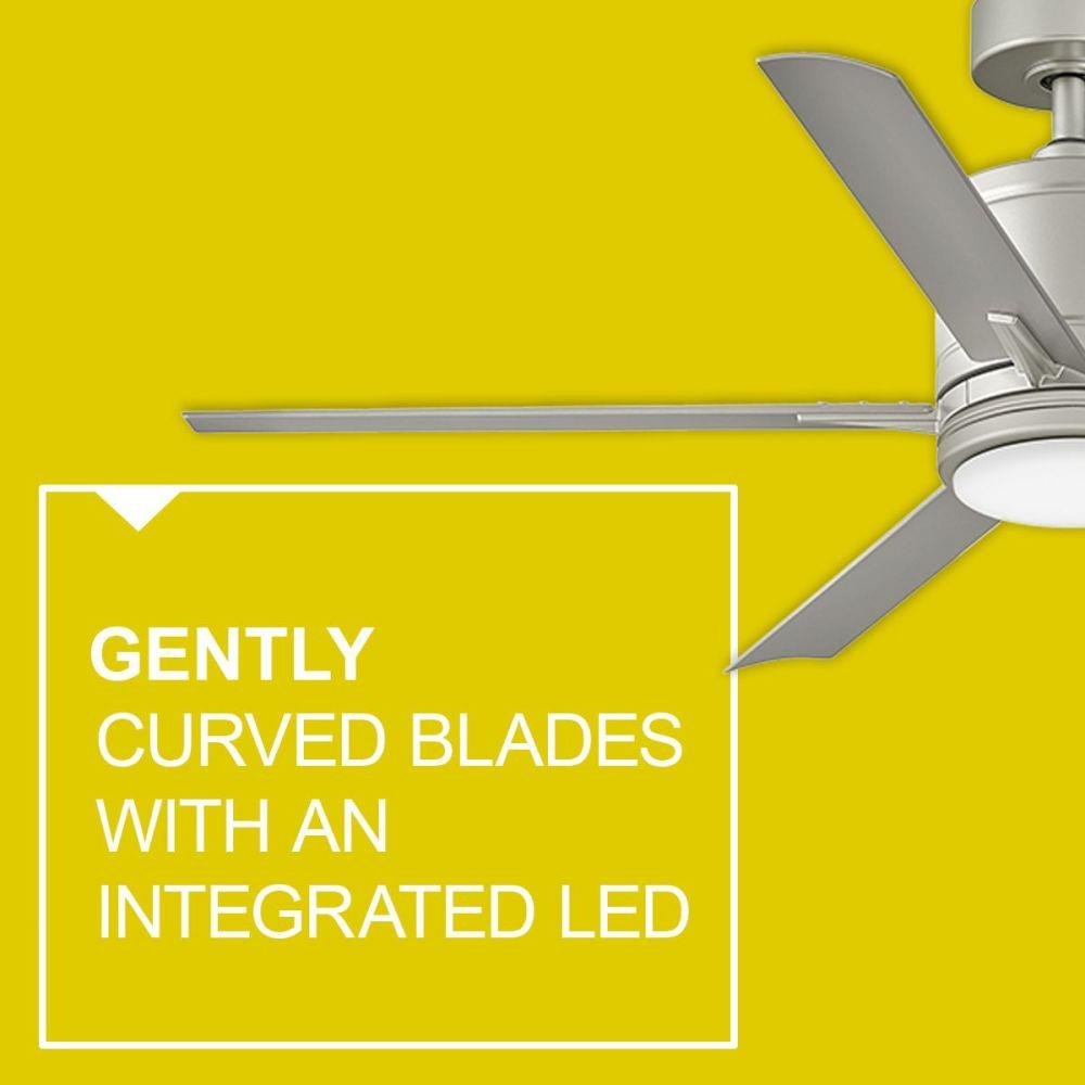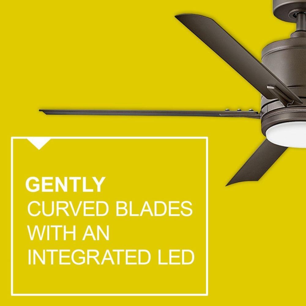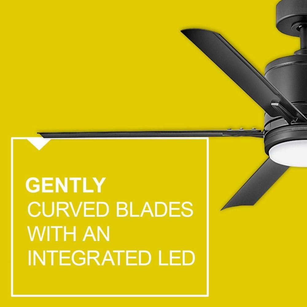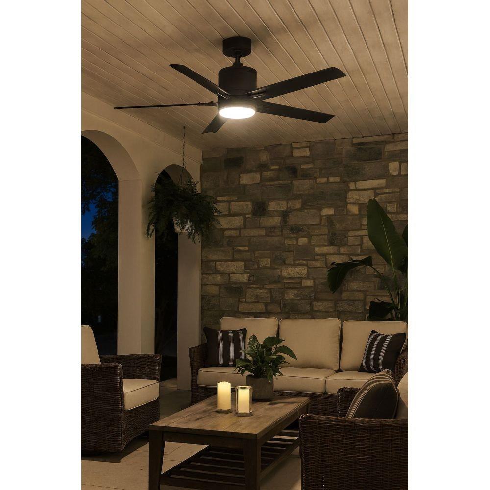 Vail offers a transitional style with gently curved blades and an array of versatile finish options, while its integrated LED and DC motor technology deliver excellent energy efficiency. Wet-rated can be used for both indoor and outdoor spaces.