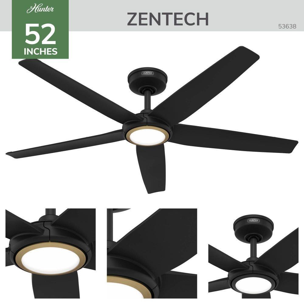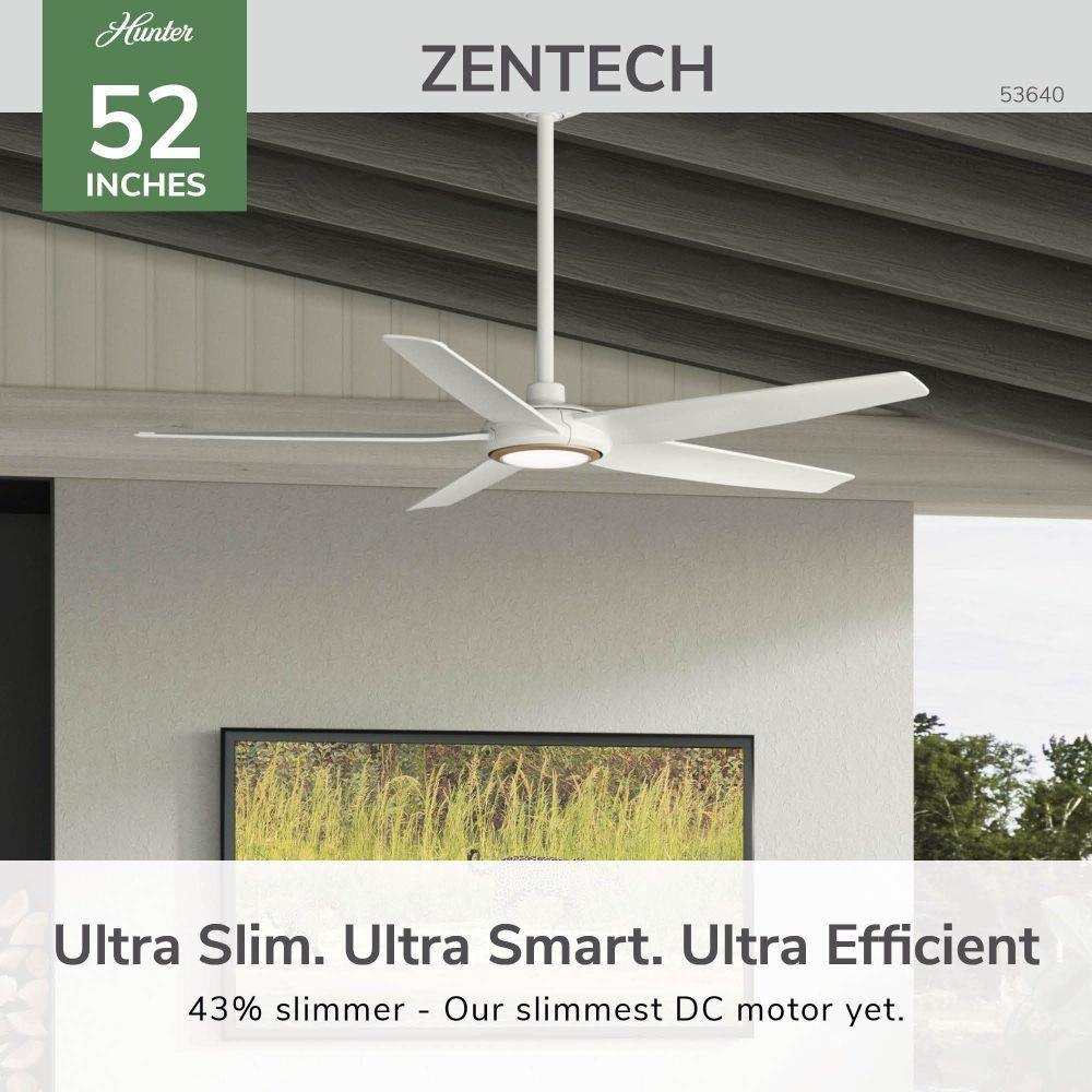 Zen-inspired and performance-driven, the 52-inch ZenTech ceiling fan features a clean five-blade design that brings modern sophistication and quiet power to indoor and covered outdoor spaces. Its ultra-slim DC motor delivers high-velocity airflow with whisper-quiet efficiency—ideal for medium to large rooms. The integrated TrueLight™ LED system offers 10 brightness levels and 3 color temperature options for customizable, balanced lighting. Backed by our SureSpeed® Guarantee and ENERGY STAR® certified, ZenTech is built for lasting performance. With smart home compatibility, an included handheld remote, and easy installation, this fan is the perfect blend of style, innovation, and comfort.