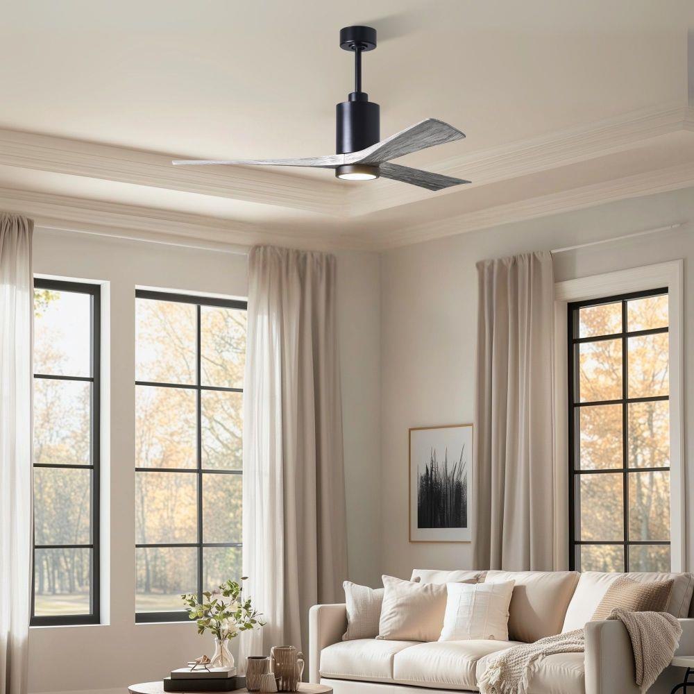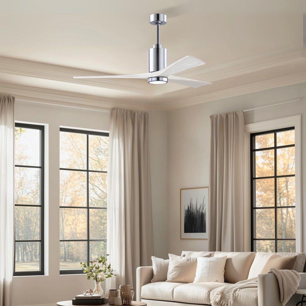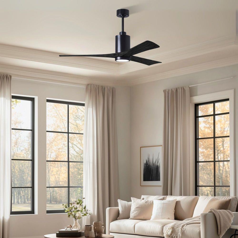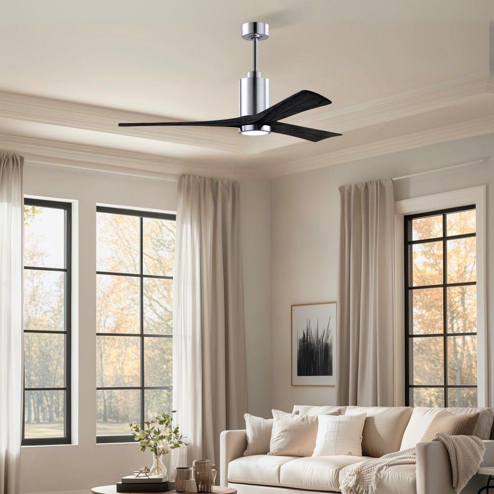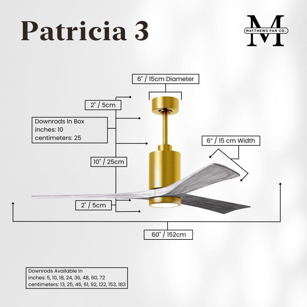 A complement to any commercial or residential space, the Patricia 3 seamlessly combines innovation with simple, refined design. Its elegant aesthetic belies its robust construction. Solid wood blades revolve around a balanced, cylindrical DC motor housing. Air is circulated efficiently with barely more than a whisper. An eco-conscious 5CCT LED color changing light kit completes the package, making Patricia 3 sophisticated, efficient and green.