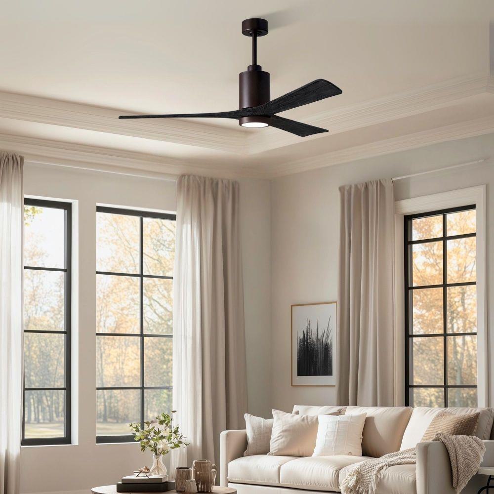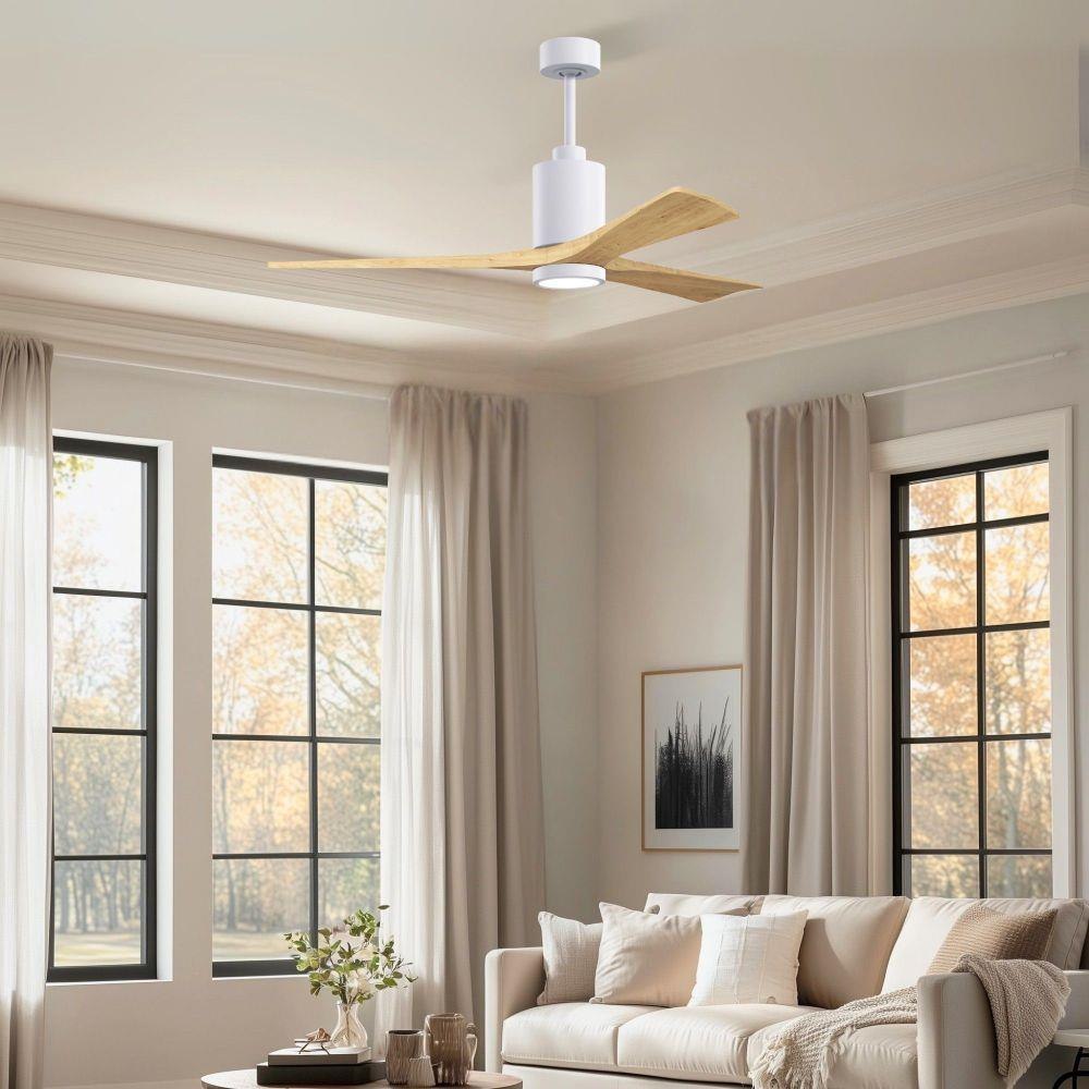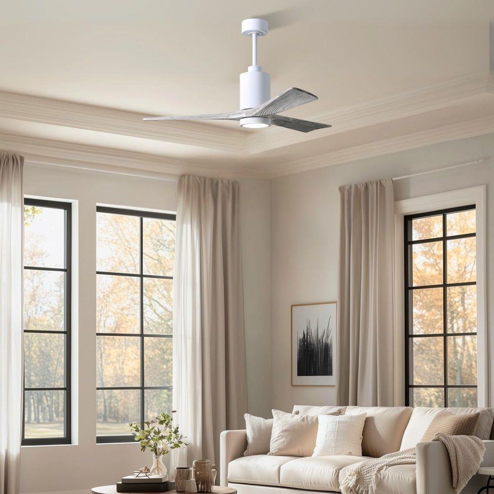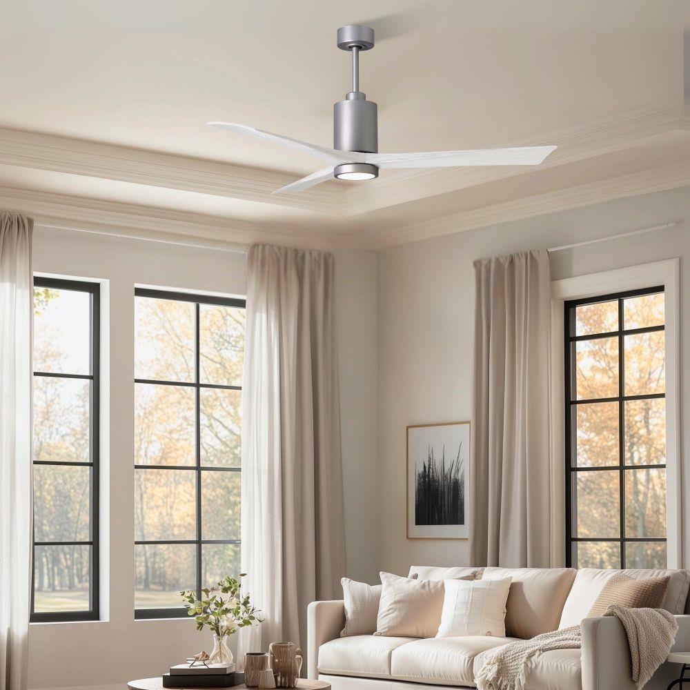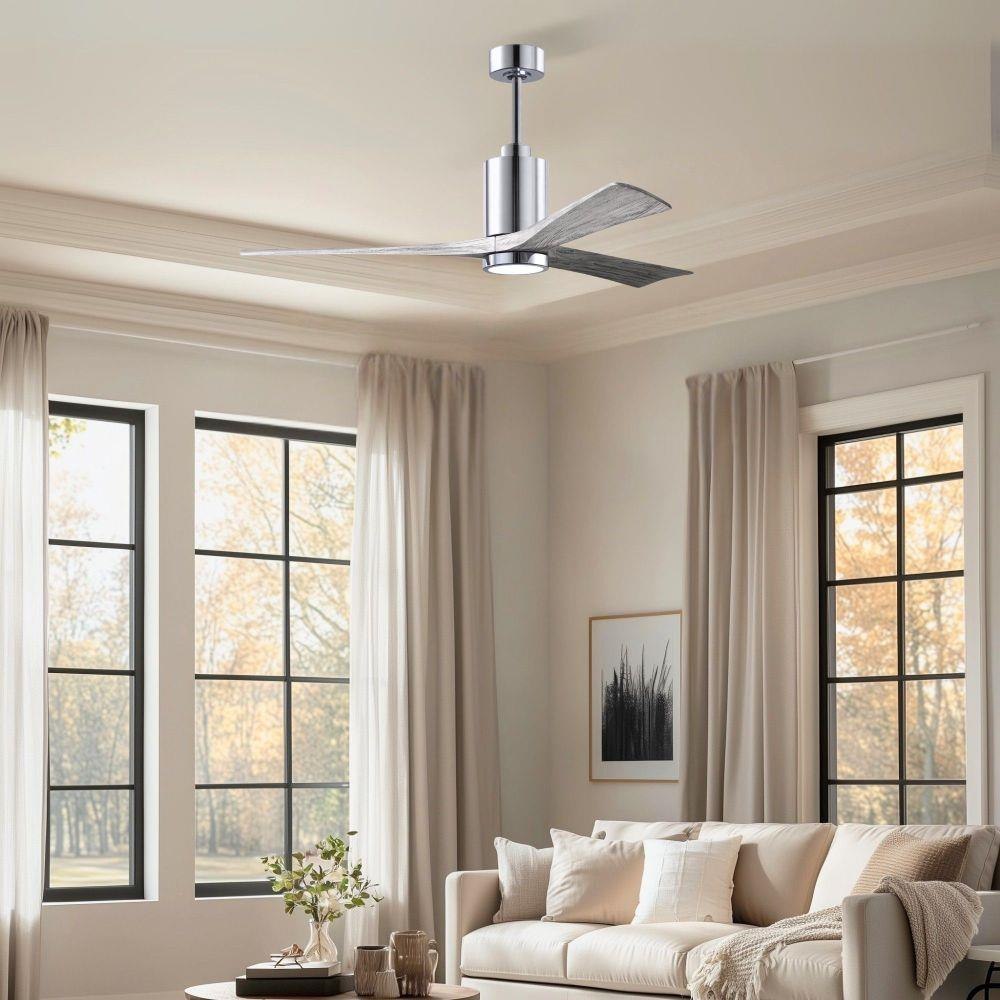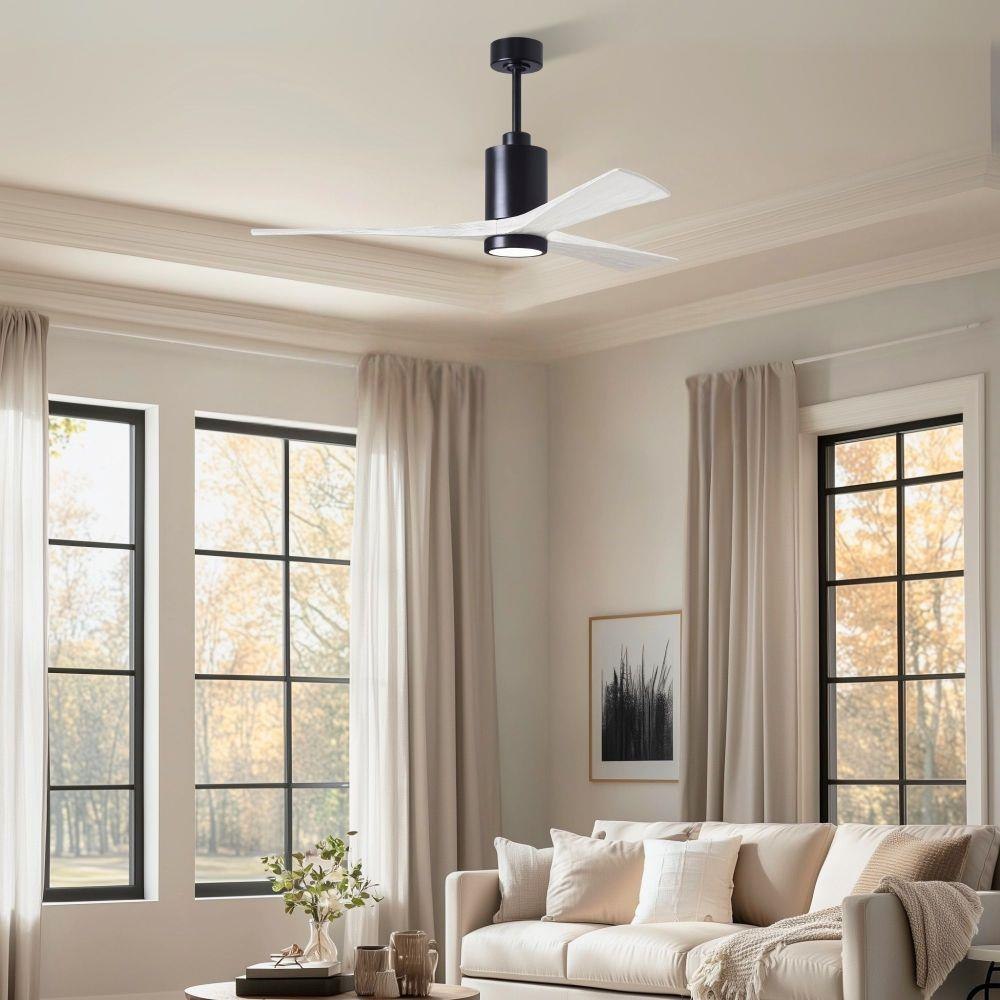 A complement to any commercial or residential space, the Patricia 3 seamlessly combines innovation with simple, refined design. Its elegant aesthetic belies its robust construction. Solid wood blades revolve around a balanced, cylindrical DC motor housing. Air is circulated efficiently with barely more than a whisper. An eco-conscious 5CCT LED color changing light kit completes the package, making Patricia 3 sophisticated, efficient and green.