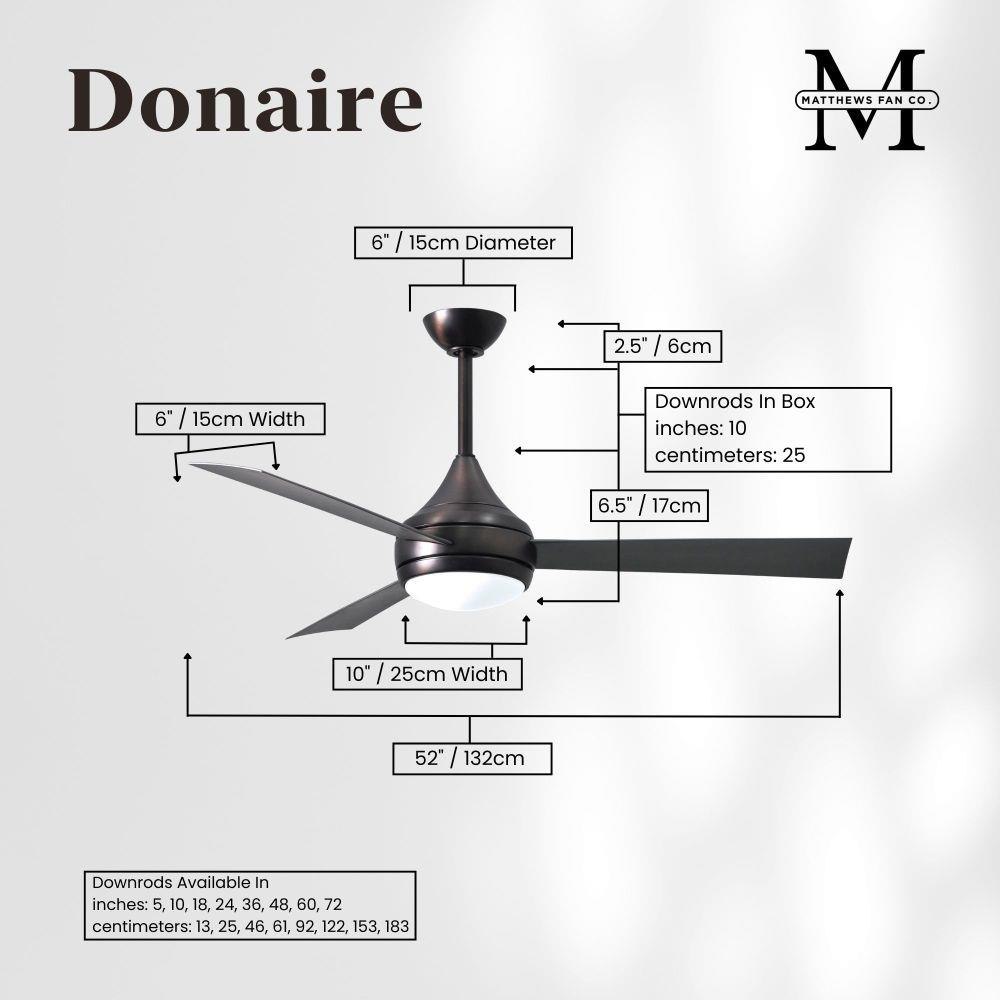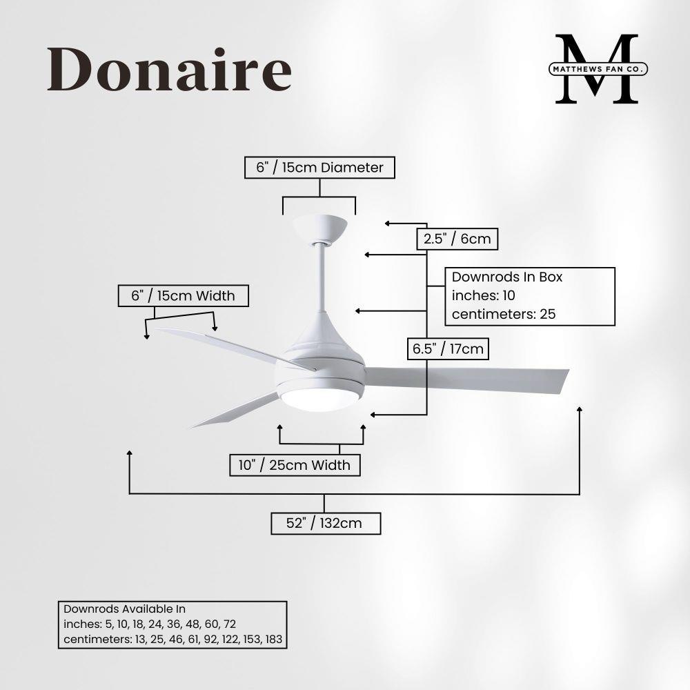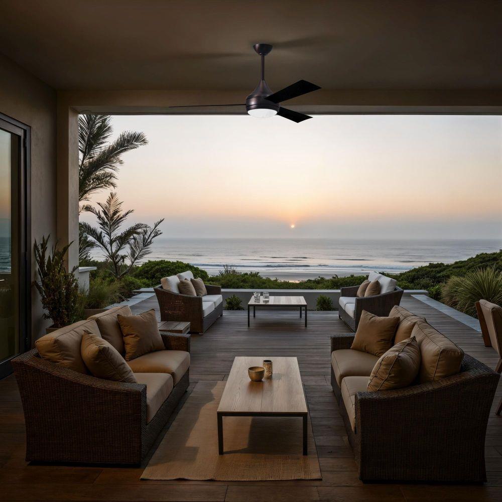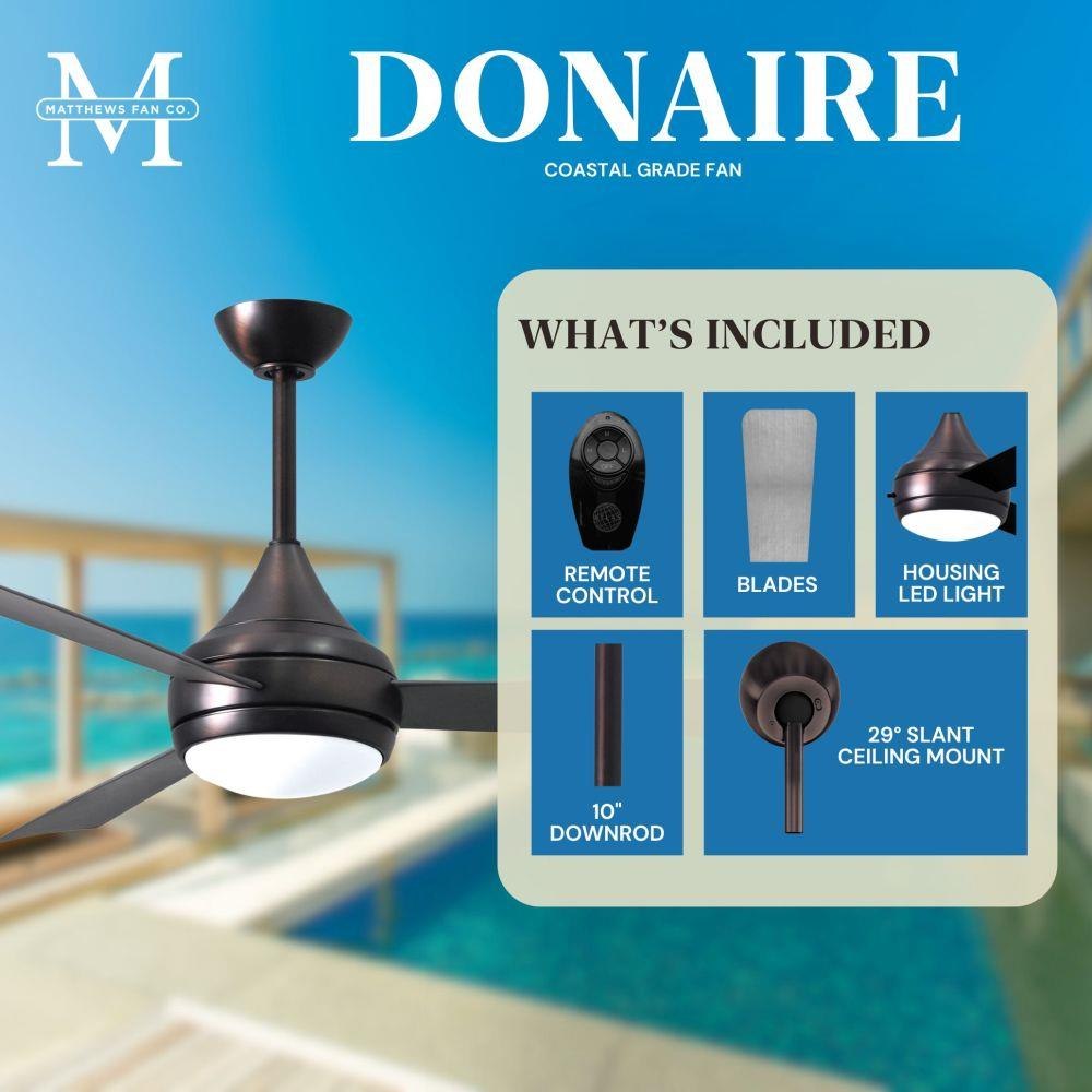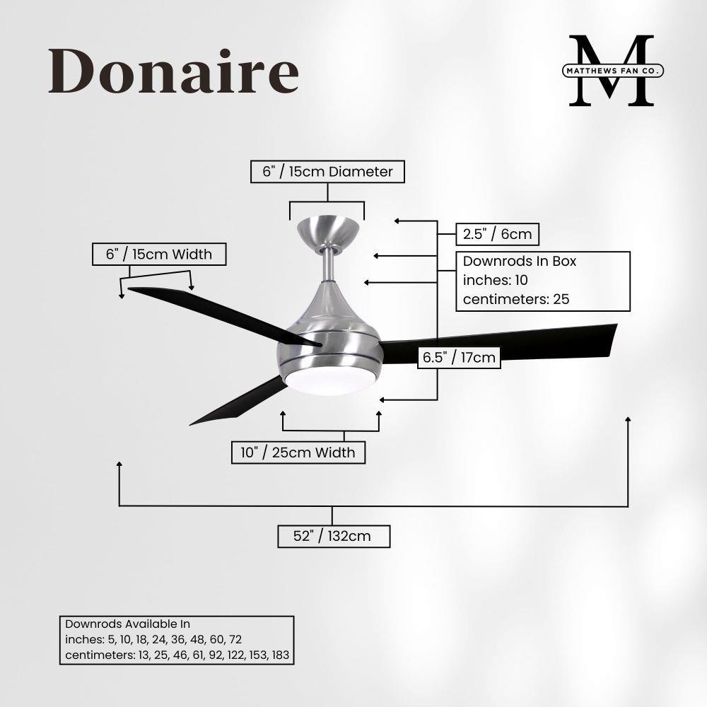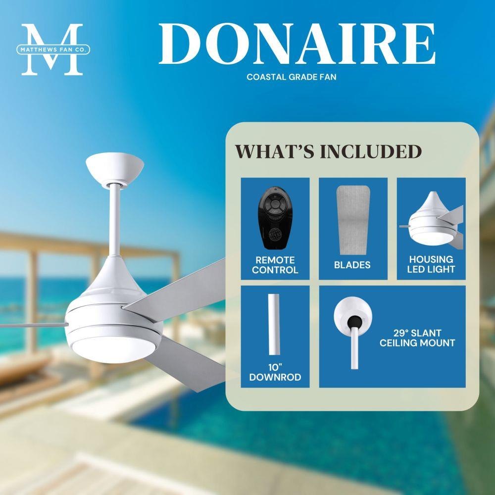 With teardrop motor housing, the 52" Donaire 316 marine grade stainless steel coastal wet location ceiling fan is transitional in design. Donaire is finished in brushed bronze, brushed stainless, matte black or gloss white, equipped with all weather blades and 16W LED dimmable light kit with optional metal cover. Constructed of entirely 316 marine grade stainless steel, the Donaire carries a limited lifetime warranty.