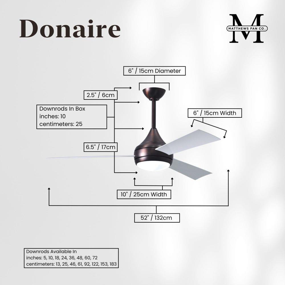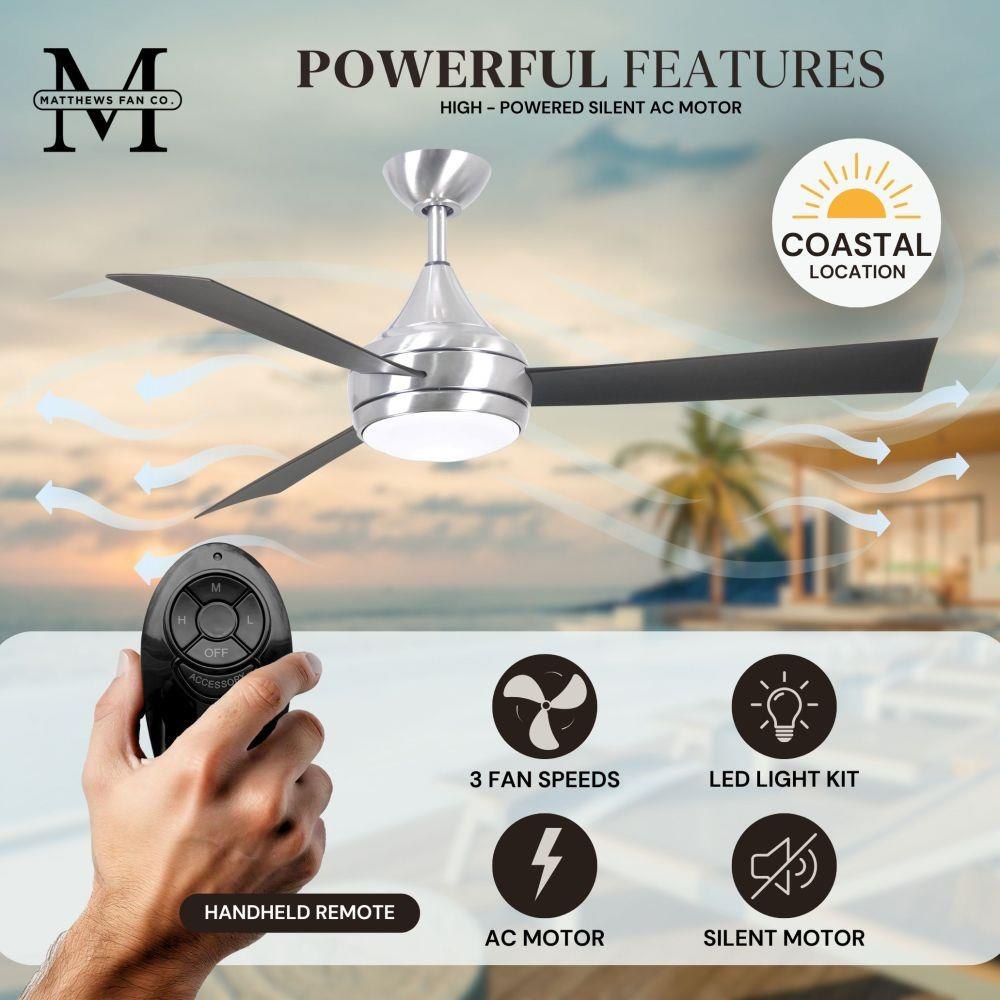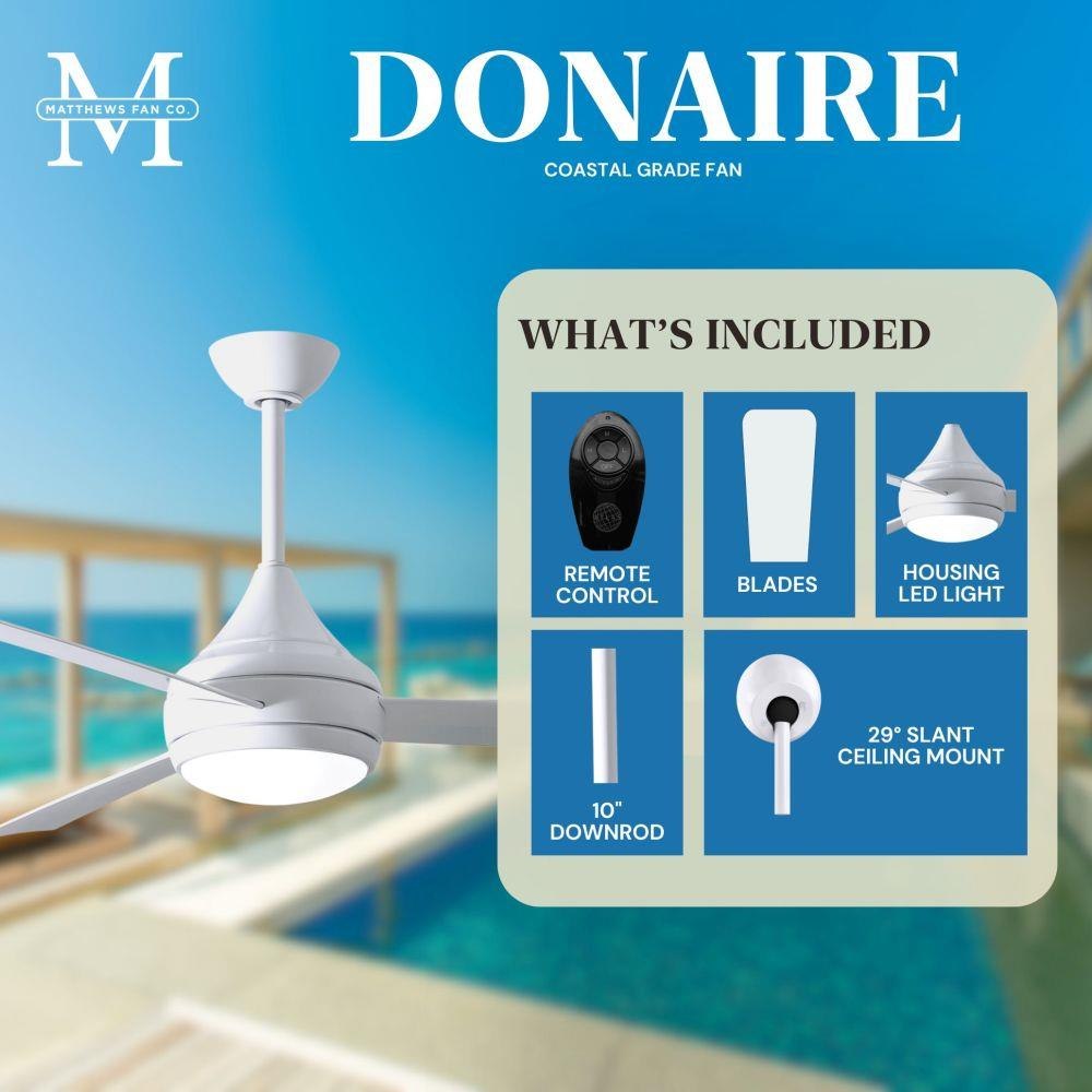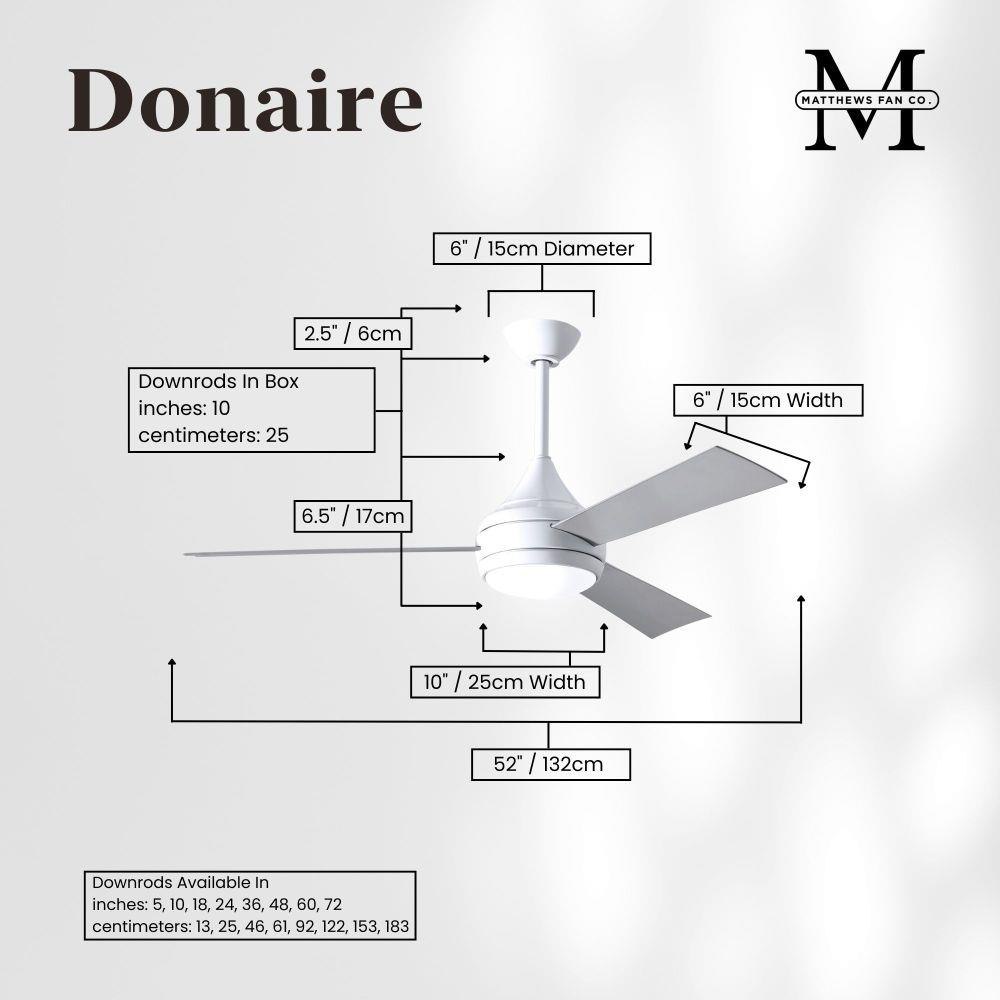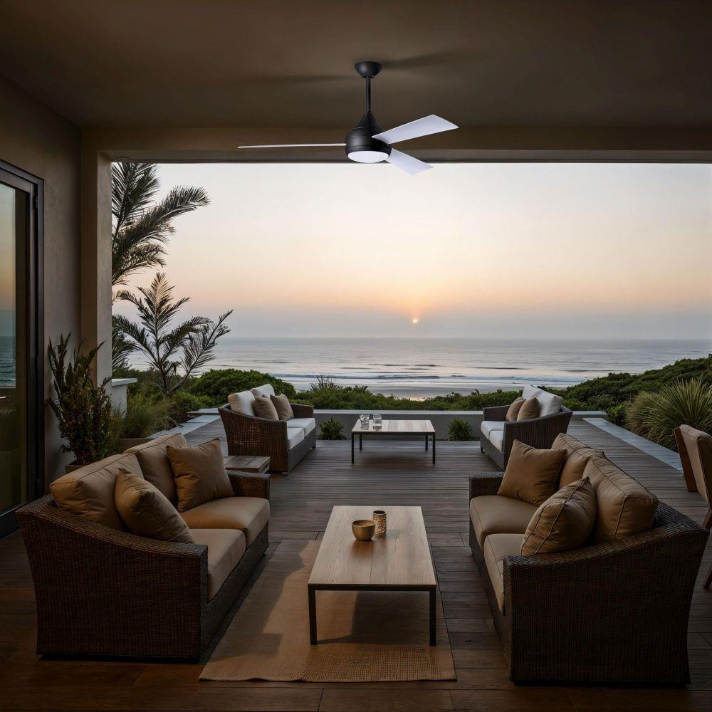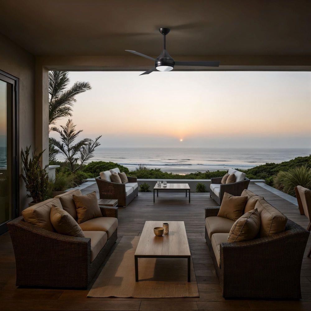 With teardrop motor housing, the 52" Donaire 316 marine grade stainless steel coastal wet location ceiling fan is transitional in design. Donaire is finished in brushed bronze, brushed stainless, matte black or gloss white, equipped with all weather blades and 16W LED dimmable light kit with optional metal cover. Constructed of entirely 316 marine grade stainless steel, the Donaire carries a limited lifetime warranty.