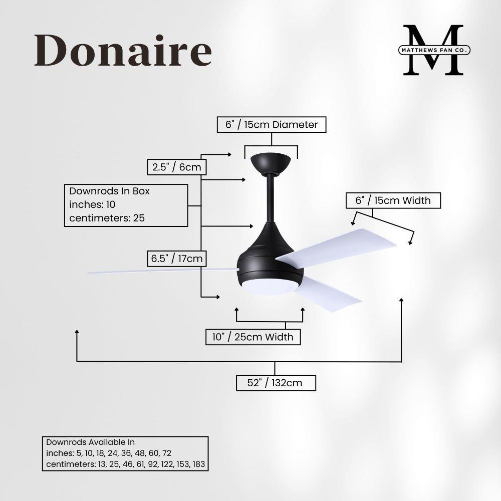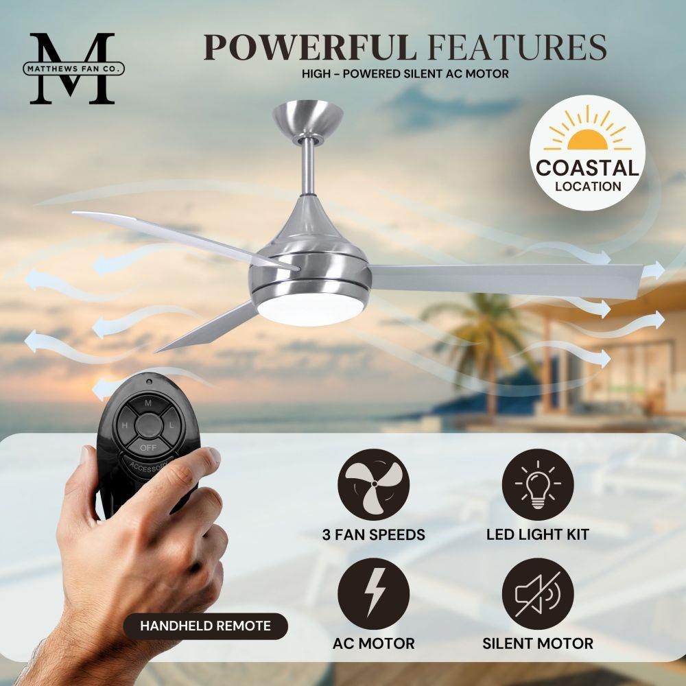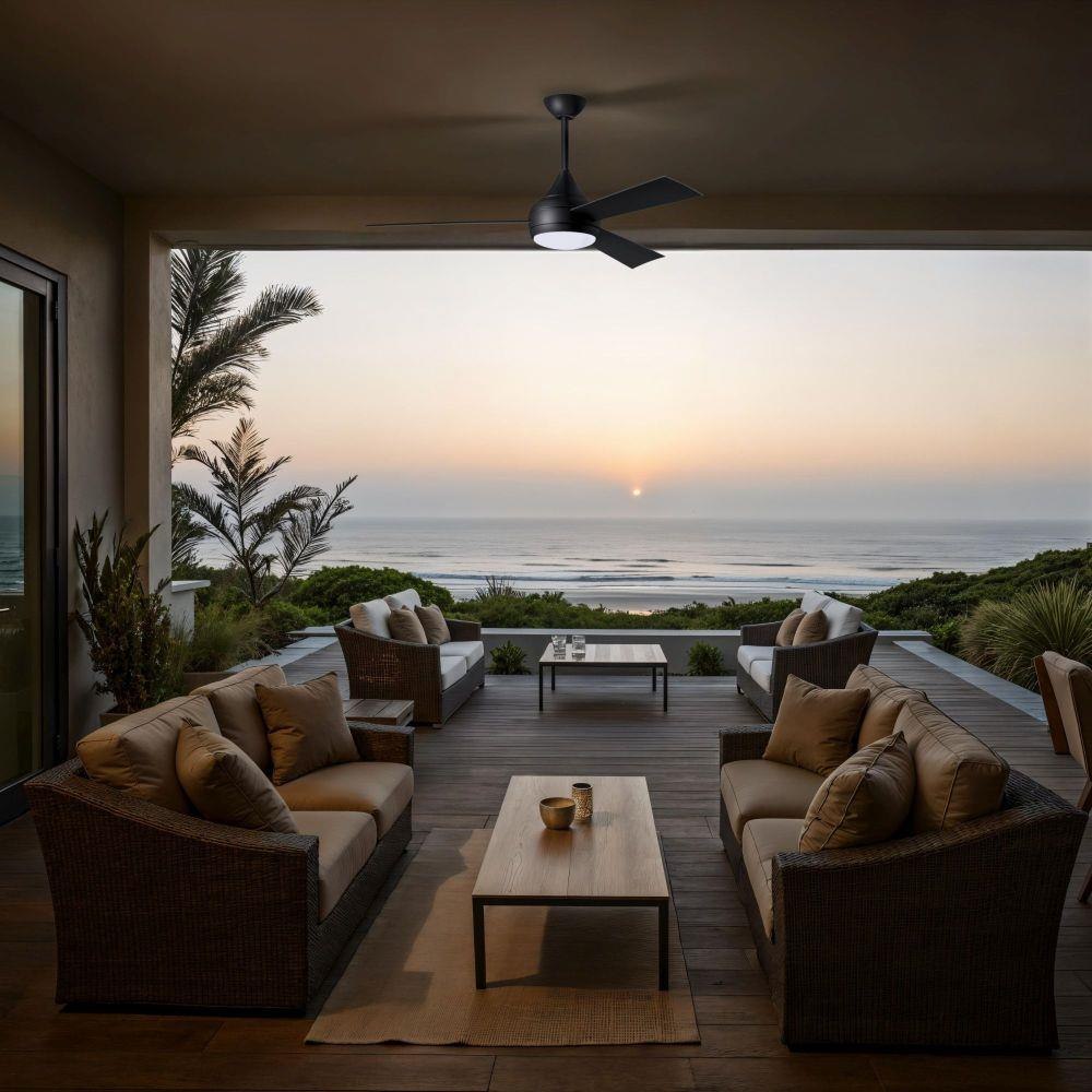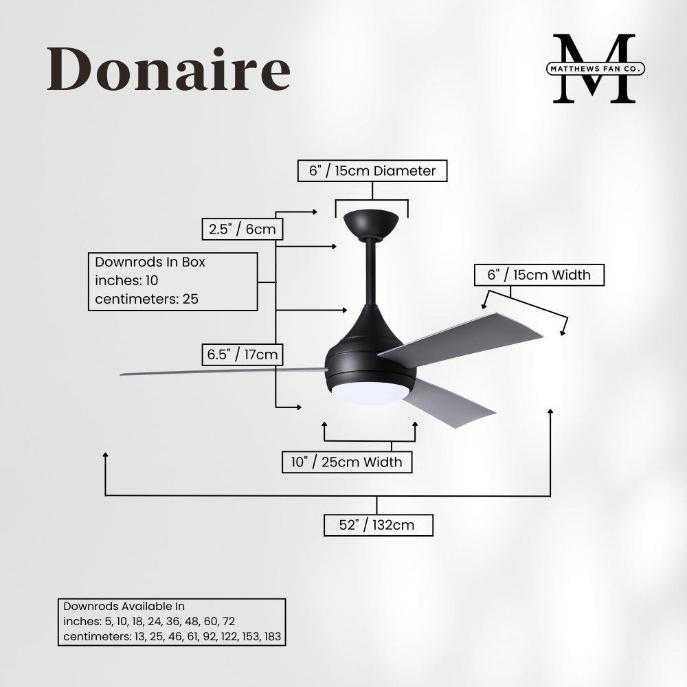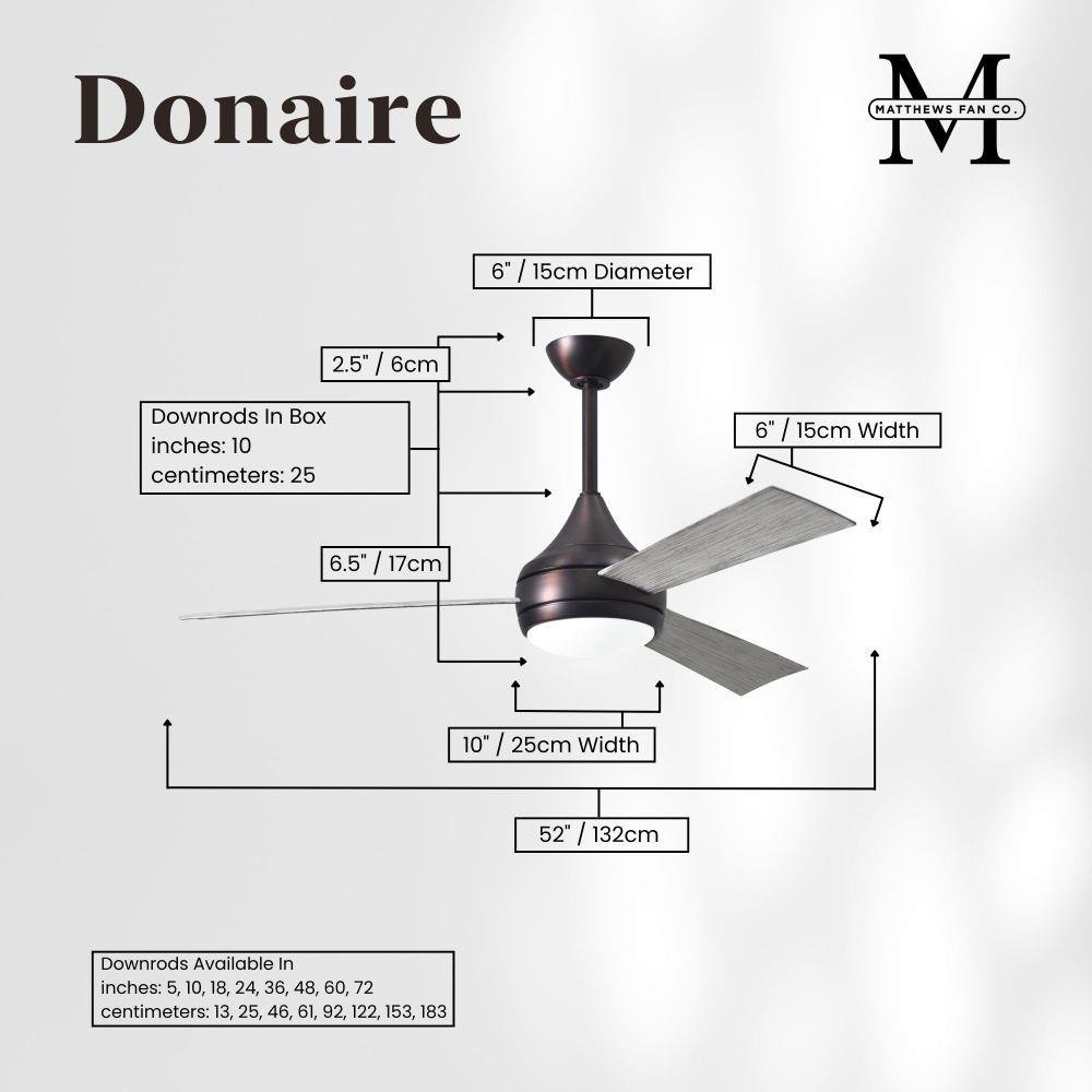 With teardrop motor housing, the 52" Donaire 316 marine grade stainless steel coastal wet location ceiling fan is transitional in design. Donaire is finished in brushed bronze, brushed stainless, matte black or gloss white, equipped with all weather blades and 16W LED dimmable light kit with optional metal cover. Constructed of entirely 316 marine grade stainless steel, the Donaire carries a limited lifetime warranty.