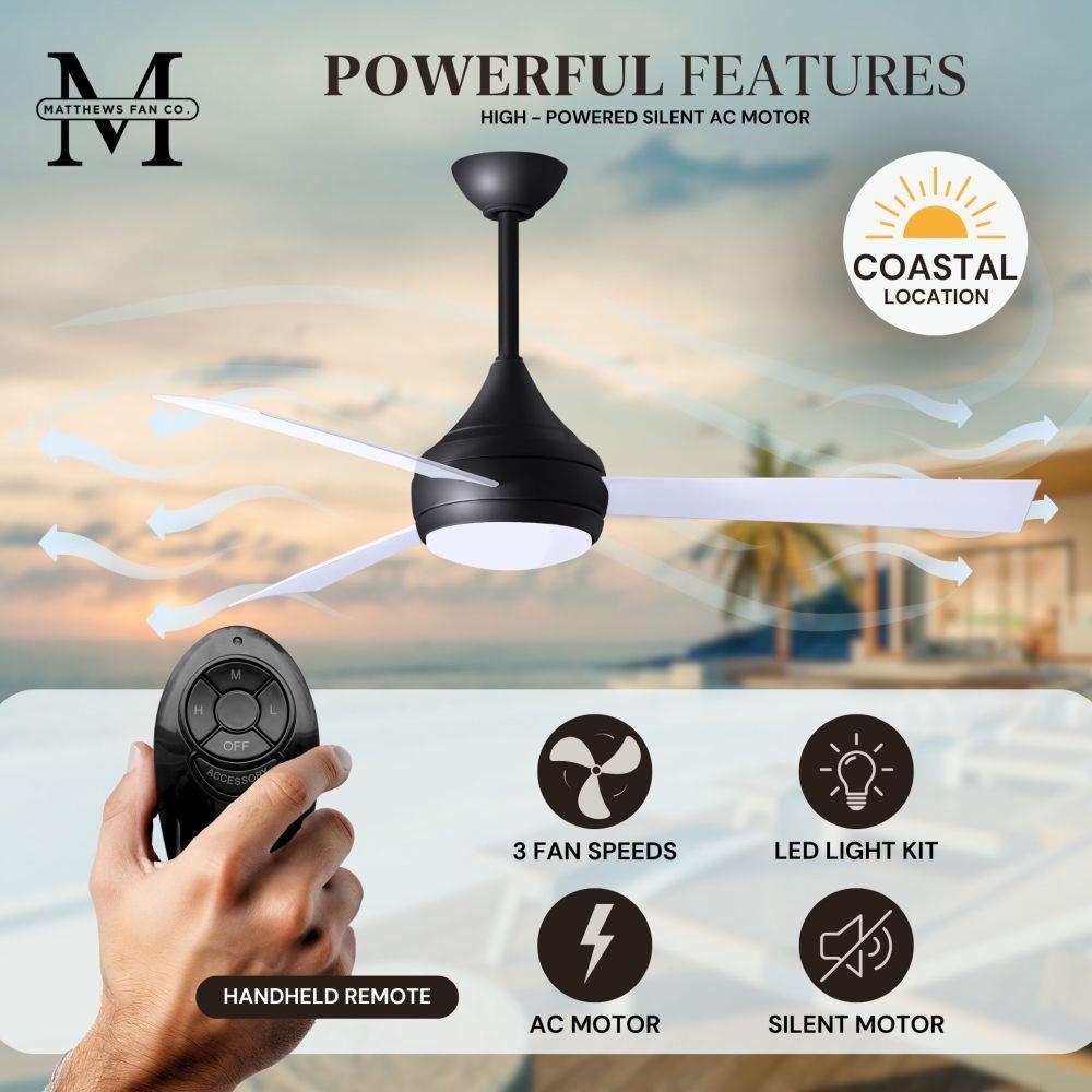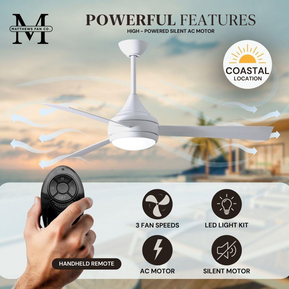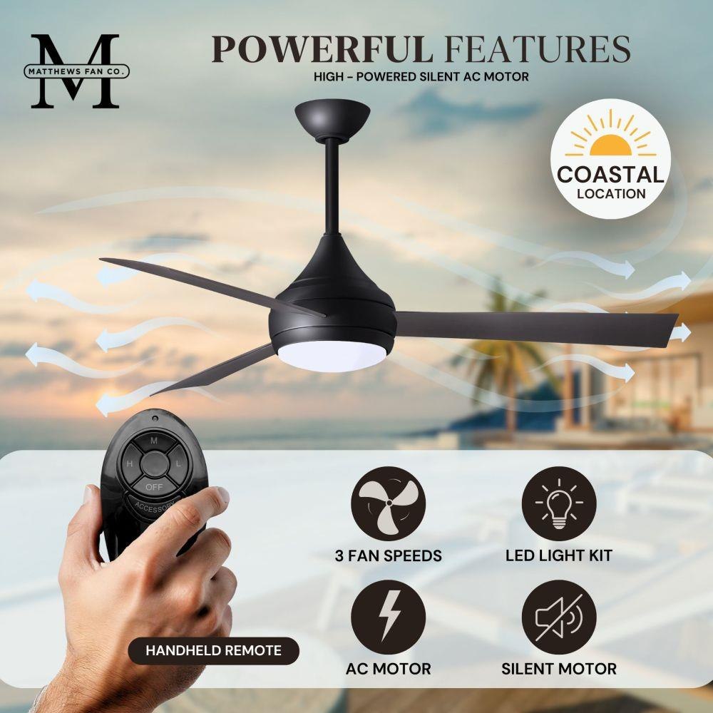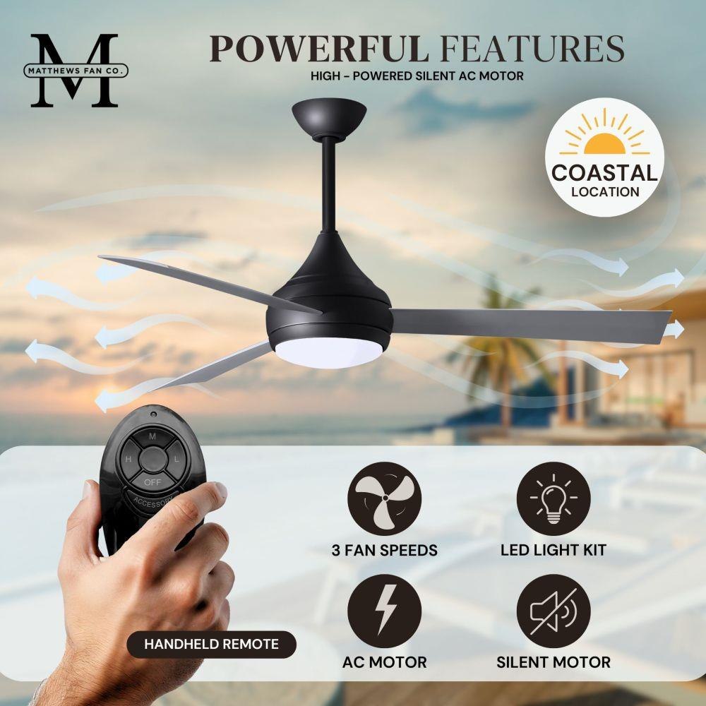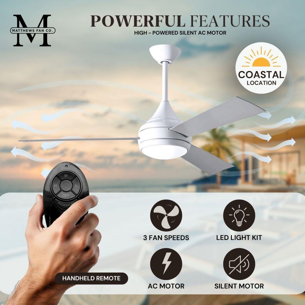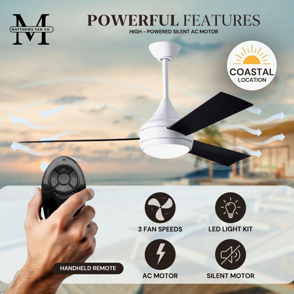 With teardrop motor housing, the 52" Donaire 316 marine grade stainless steel coastal wet location ceiling fan is transitional in design. Donaire is finished in brushed bronze, brushed stainless, matte black or gloss white, equipped with all weather blades and 16W LED dimmable light kit with optional metal cover. Constructed of entirely 316 marine grade stainless steel, the Donaire carries a limited lifetime warranty.