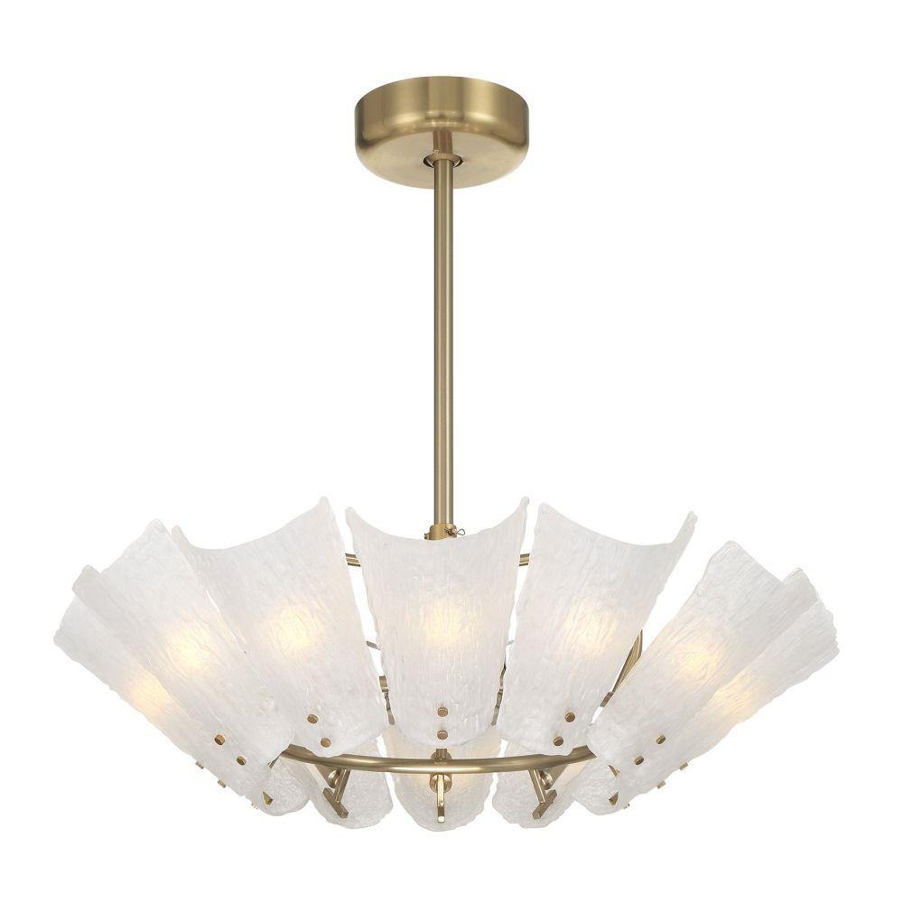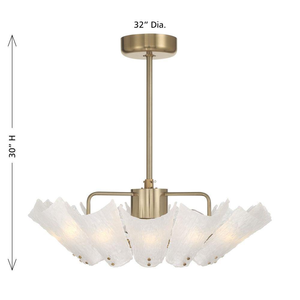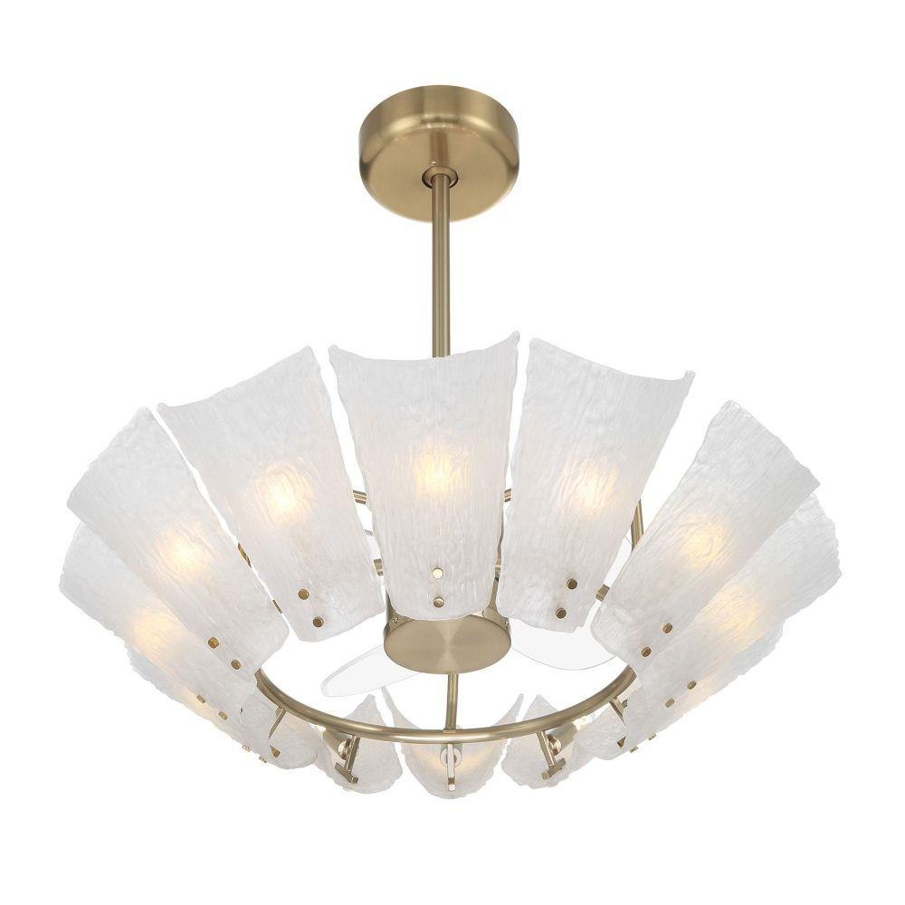 The Savoy House Celina Fan D’Lier blooms like a luminous floral sculpture with softly curved petals of frosted sugar glass shimmering against a Noble Brass finish. Twelve included candelabra LED bulbs cast a radiant, welcoming glow while the efficient DC motor quietly circulates air throughout the room. A handheld remote keeps convenience close at hand. Celina measures 30" tall and 32" wide and includes both 4" and 18" downrods. It is part of the exclusive Savoy House Fan D’Lier family - design-forward fixtures that elevate the concept of a ceiling fan with the sophistication of a chandelier.